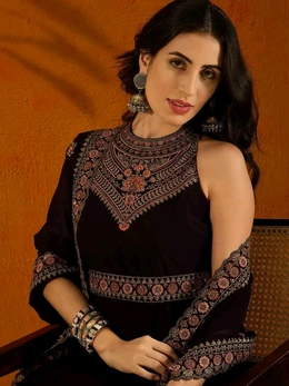 Step into the world of timeless elegance with the Anouk Violet Embroidered Anarkali Beads And Stones Kurta with Trousers & Dupatta, brought to you by Shriya Fashion. Designed for the modern woman who cherishes tradition, this exquisite ensemble blends intricate craftsmanship with contemporary charm, making it the perfect choice for weddings, festive gatherings, or any special occasion.