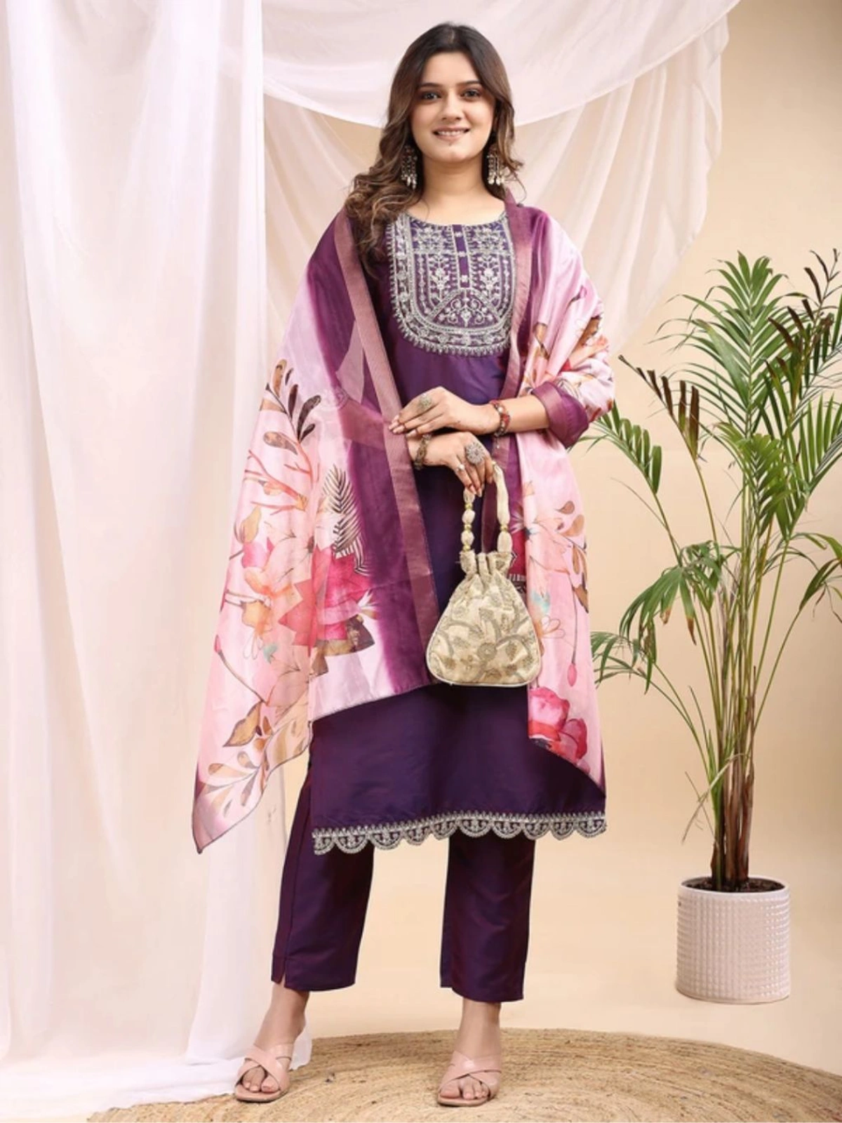 Step into elegance and sophistication with the stunning AYUKTA INTERNATIONAL Women Art Silk Kurti Pant Dupatta Set, exclusively from Shriya Fashion. Crafted to perfection, this ensemble seamlessly blends traditional charm with modern design, making it the perfect addition to your ethnic wardrobe. Whether you're attending a festive celebration, family gathering, or a special occasion, this set will ensure you leave a lasting impression.
