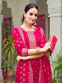 Other Details Step out in style with our stunning Sequined Embroidered kurta suit set! The full front embroidery adds a touch of elegance, while the heavy embroidered dupatta completes the look. Made with luxurious silk, this set is perfect for any special occasion.
