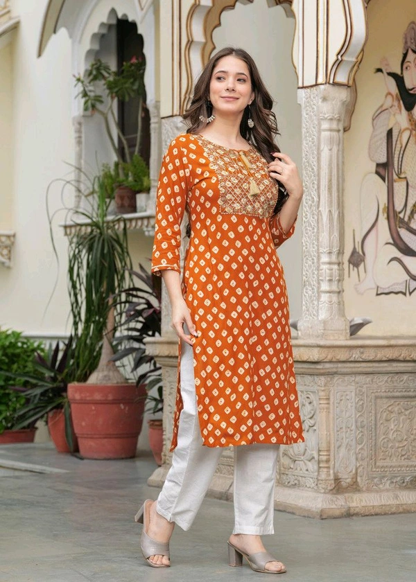 Deepyog Women Printed Viscose Rayon Straight Kurta (Brown)