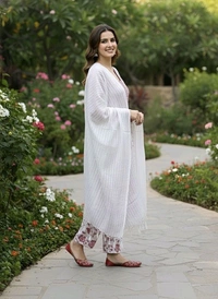- Complete Set: Includes a perfectly matched kurta, trouser/pant, and dupatta for a coordinated outfit.