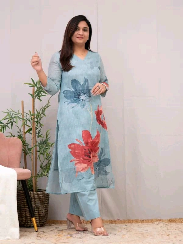 GoSriKi Floral Printed Straight Kurta with Trousers