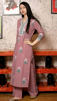 Gosriki Women Cotton Rayon Kurta Pant Dupatta Set