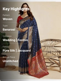 Whether you're attending a wedding, festive celebration, or a formal gathering, this saree promises to elevate your style quotient effortlessly. The exquisite craftsmanship of Banarasi weaving ensures a luxurious touch, while the intricate jacquard patterns add an unmatched charm to your overall look.