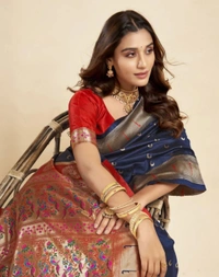 Elegance Redefined: Houri Fab Woven Banarasi Pure Silk Jacquard Saree (Dark Blue)