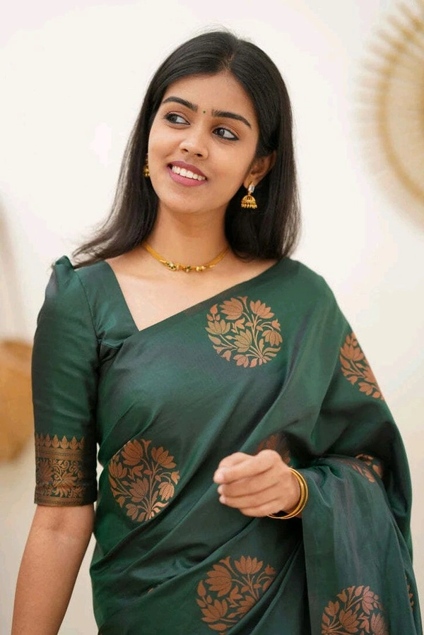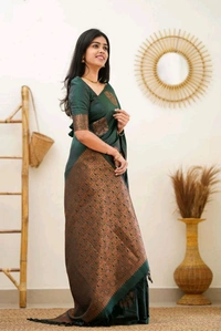 HouseOfCommon Woven, Printed Banarasi Art Silk Saree (Dark Green)