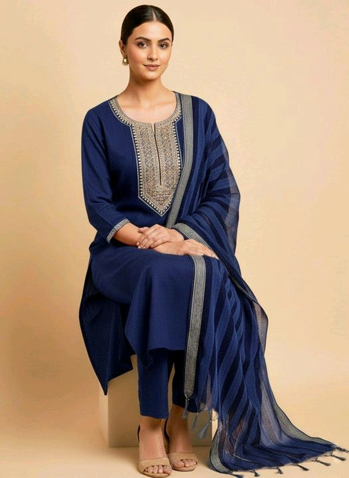 Designed by IBRANA and brought to you by Shriya Fashion, this kurti pant dupatta set is the epitome of timeless ethnic fashion. The elegant Eastern Blue shade adds a touch of sophistication, making you stand out effortlessly wherever you go.