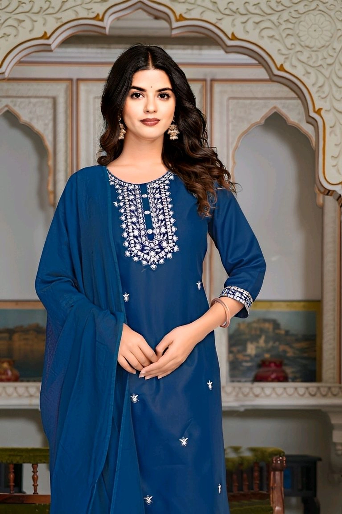 • Elegant Design: The kurti features intricate detailing that exudes sophistication, perfectly complemented by a chic pant and a beautifully designed dupatta.