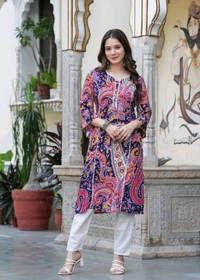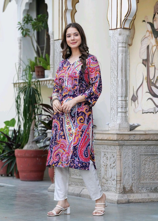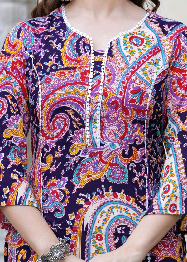 Women Printed Pure Cotton Straight Kurta (Purple)