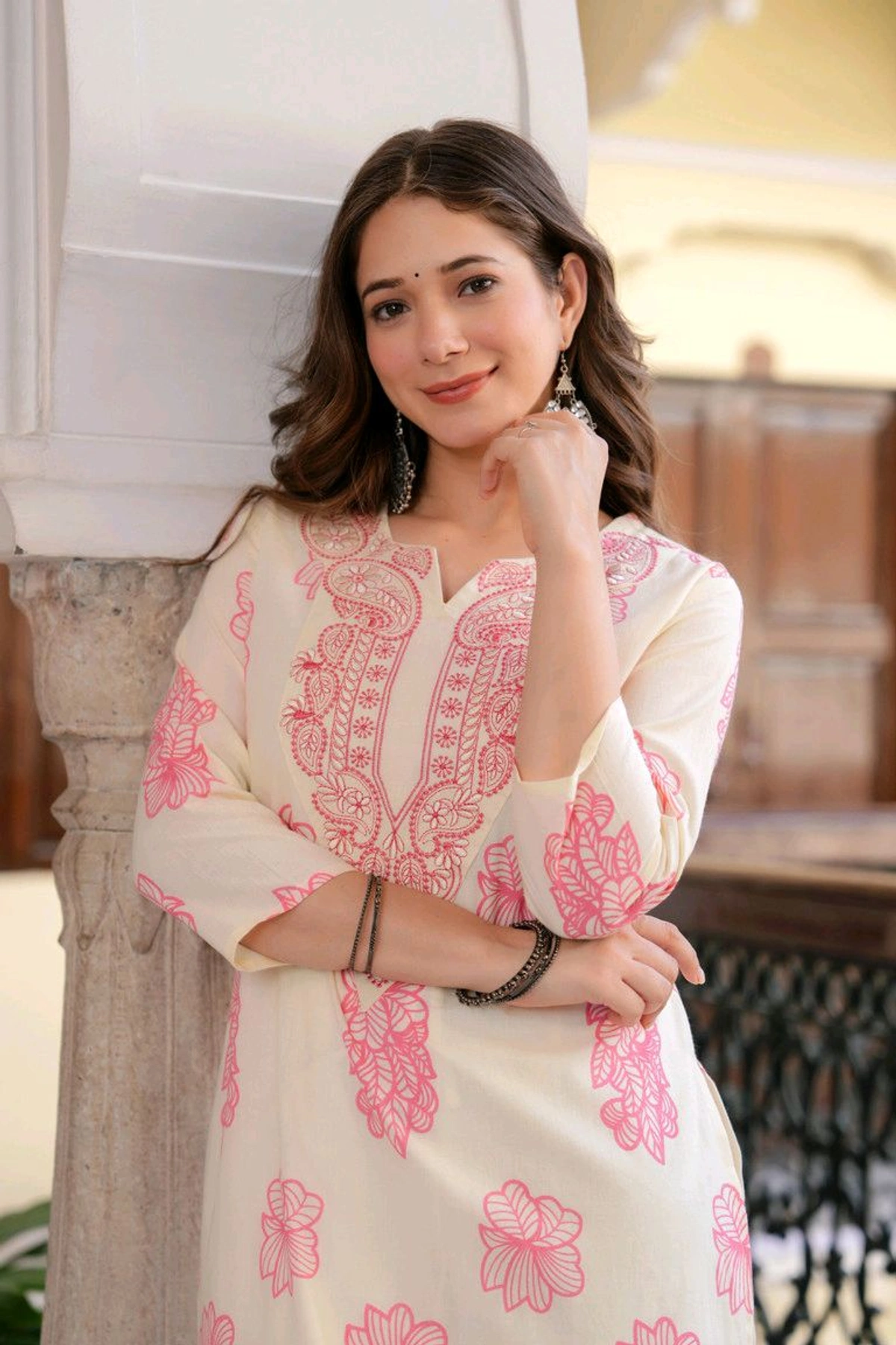 Koito Women Printed Pure Cotton Straight Kurta (Pink)