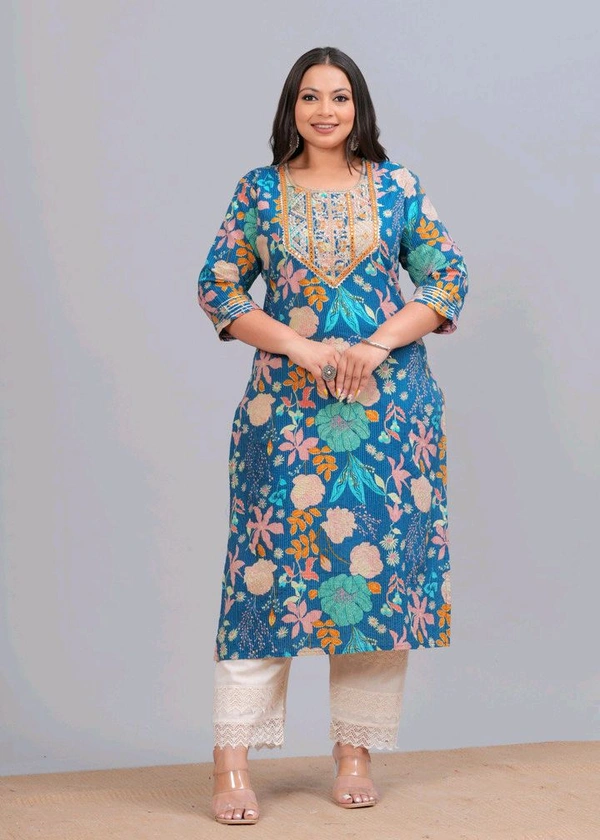 LABULY Women Embroidered Pure Cotton Straight Kurta