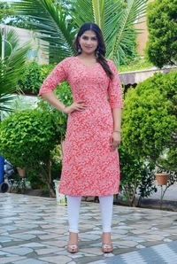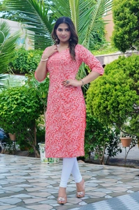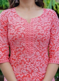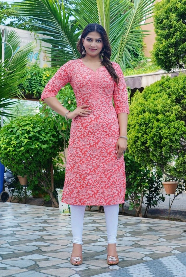 MARKHYA WALA Women Printed Cotton Rayon Straight Kurta (Pink)