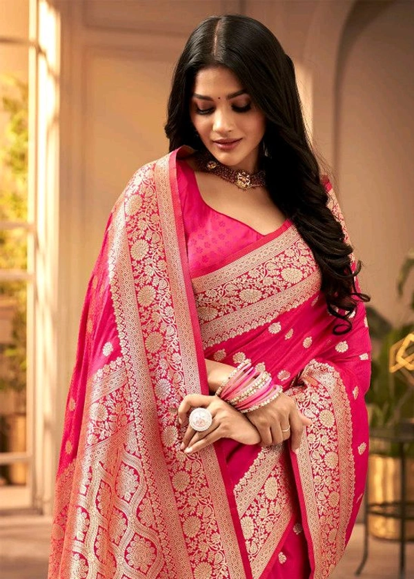 Elevate Your Elegance with the Pervas Woven Kanjivaram Cotton Silk, Pure Silk Saree (Pink)
