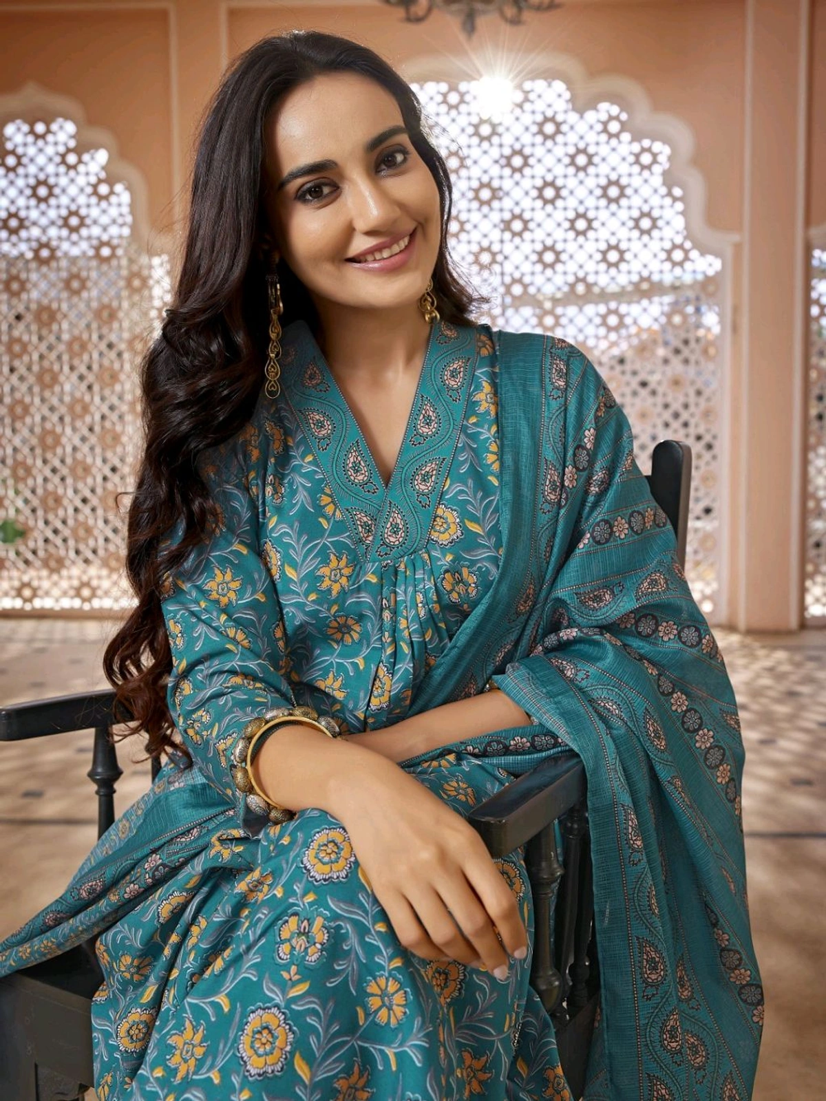 Royal Export Women Viscose Rayon Kurta Pant Dupatta Set