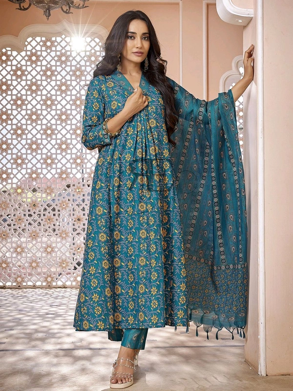 Royal Export Women Viscose Rayon Kurta Pant Dupatta Set