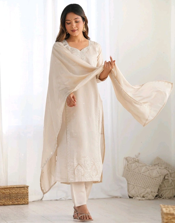 Skylee Women Silk Blend Kurta Pant Dupatta Set