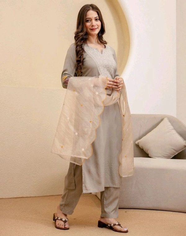 - Complete Set: Includes a beautifully designed kurta, matching pant, and an elegant dupatta.