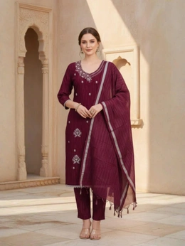 • Complete Ensemble: Includes a beautifully tailored kurta, matching pants, and a graceful dupatta, giving you a cohesive and polished look.